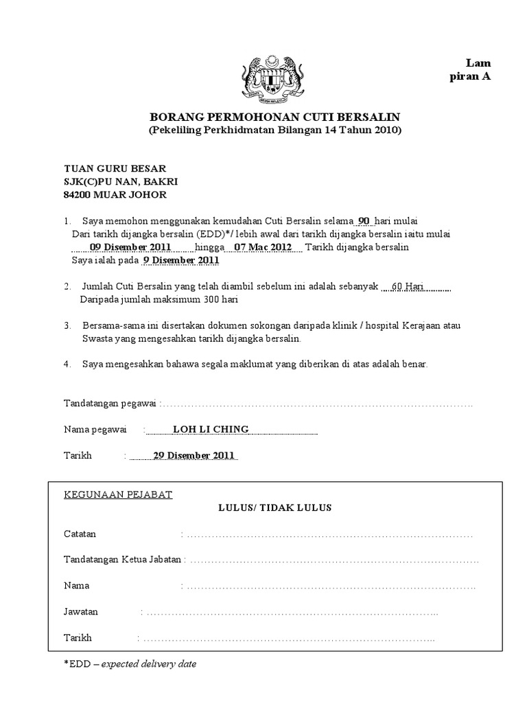 Surat rasmi cuti bersalin surat rasmi u.